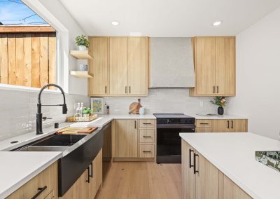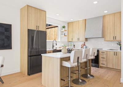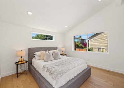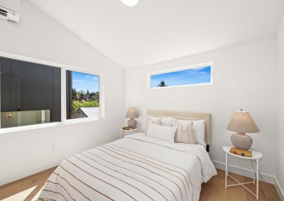 Completed 2 bed, 2.5 bath DADU in Highland Park West Seattle, WA 98106 with an open floorplan, wide plank hardwoods, chef’s kitchen with island, quartz counters, mini splits, heated tile floors, vaulted primary suite, and EV ready parking.