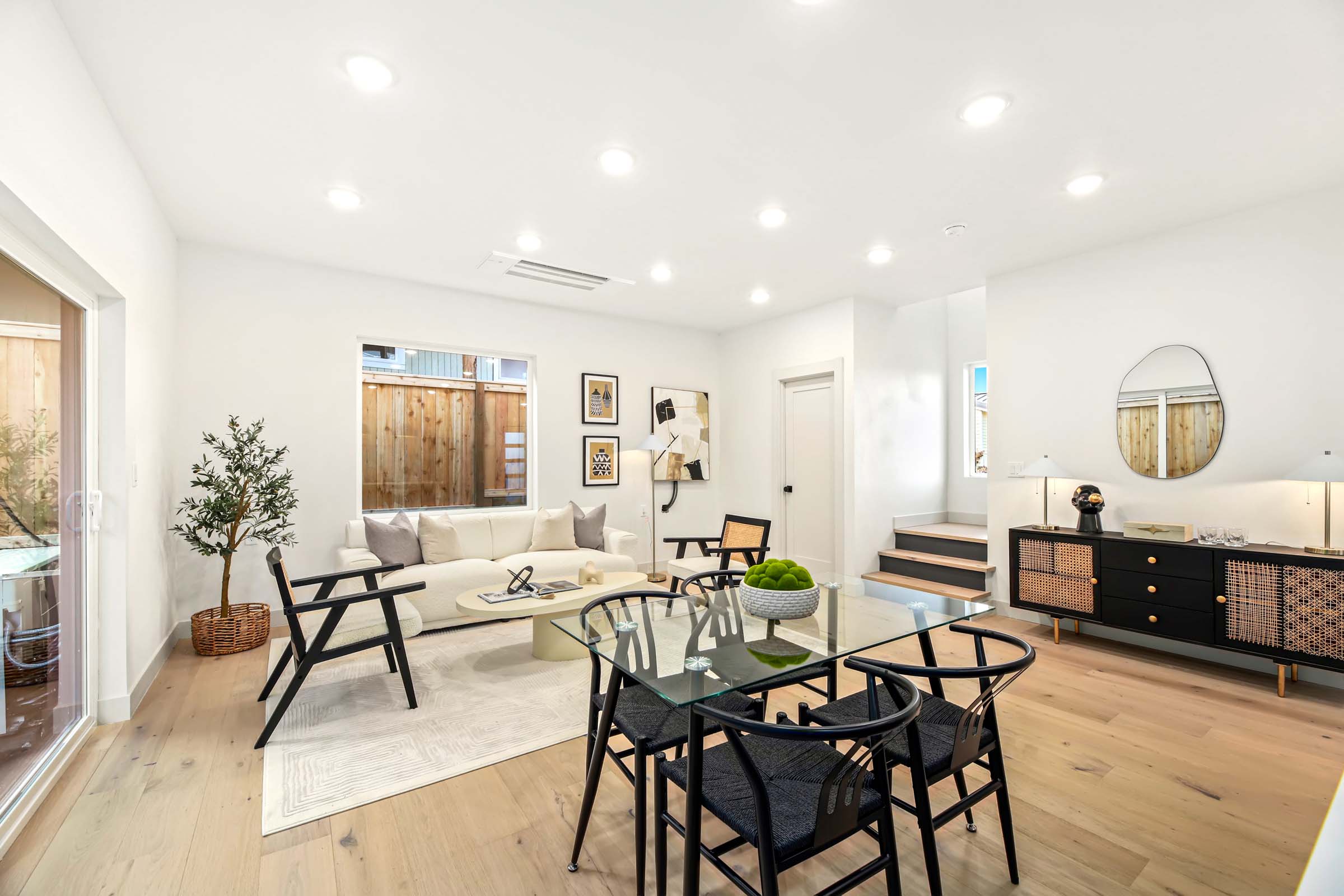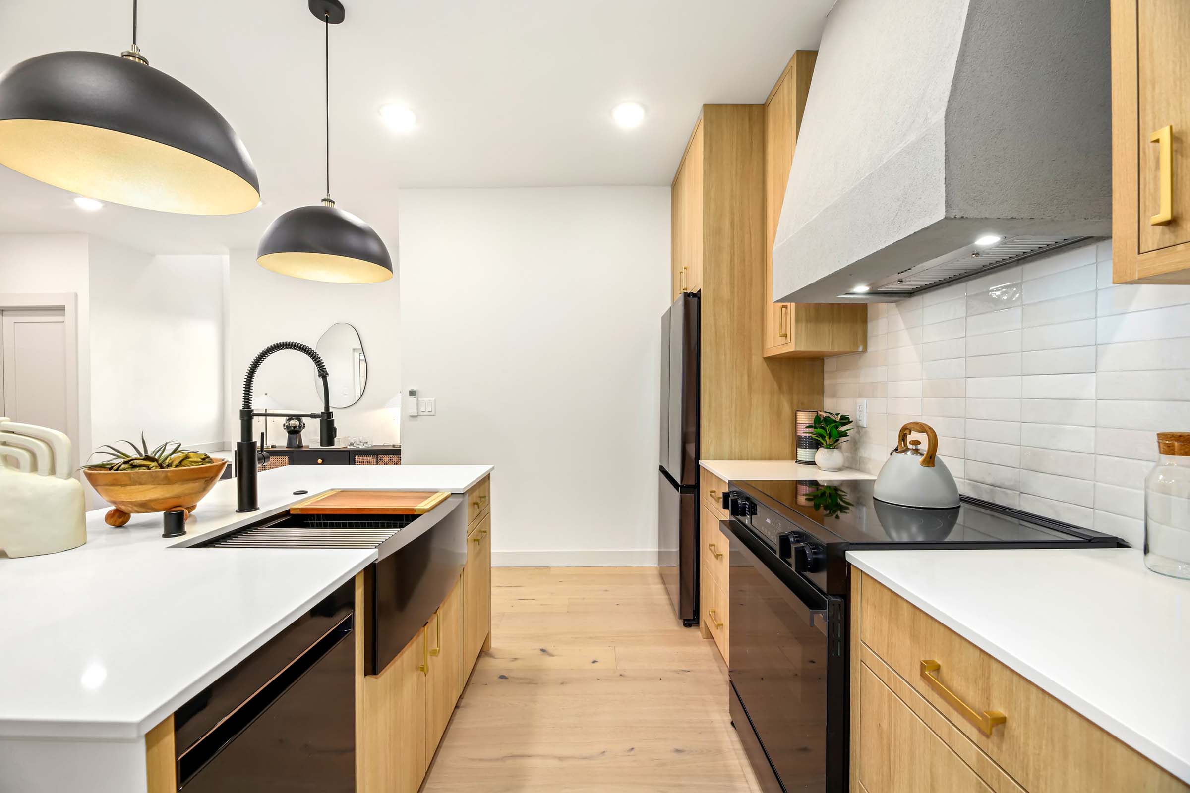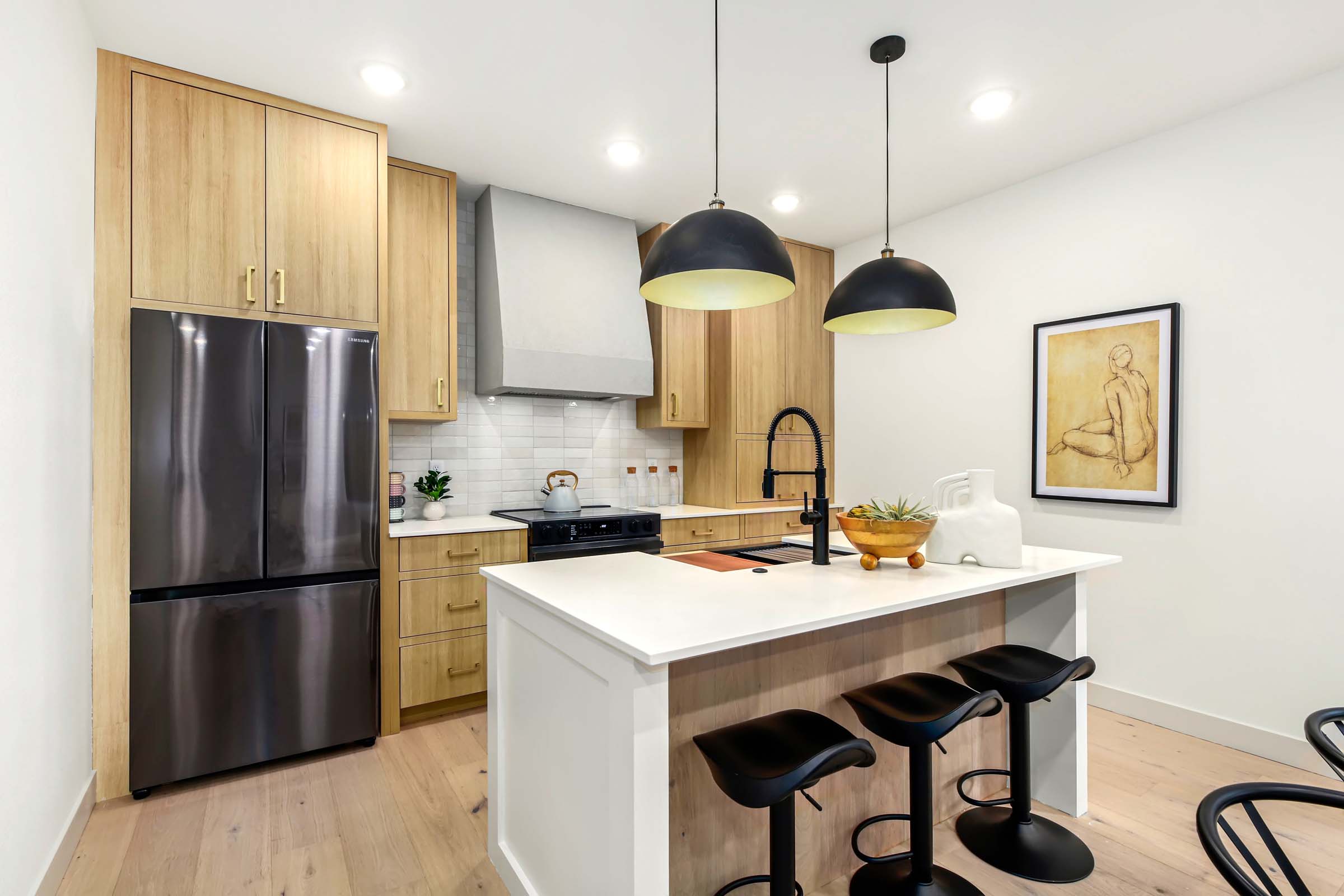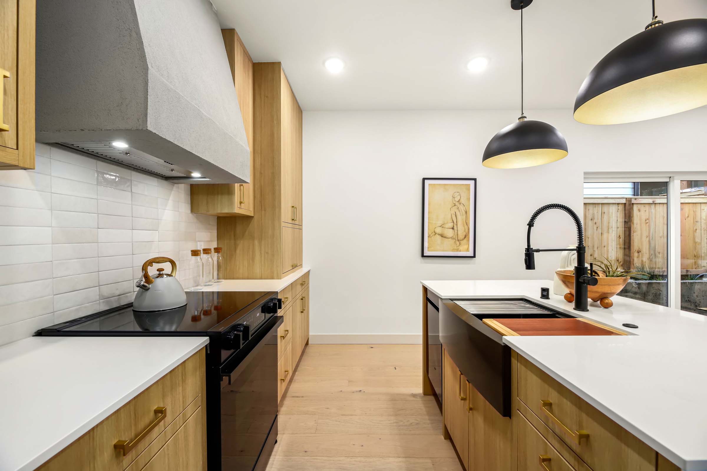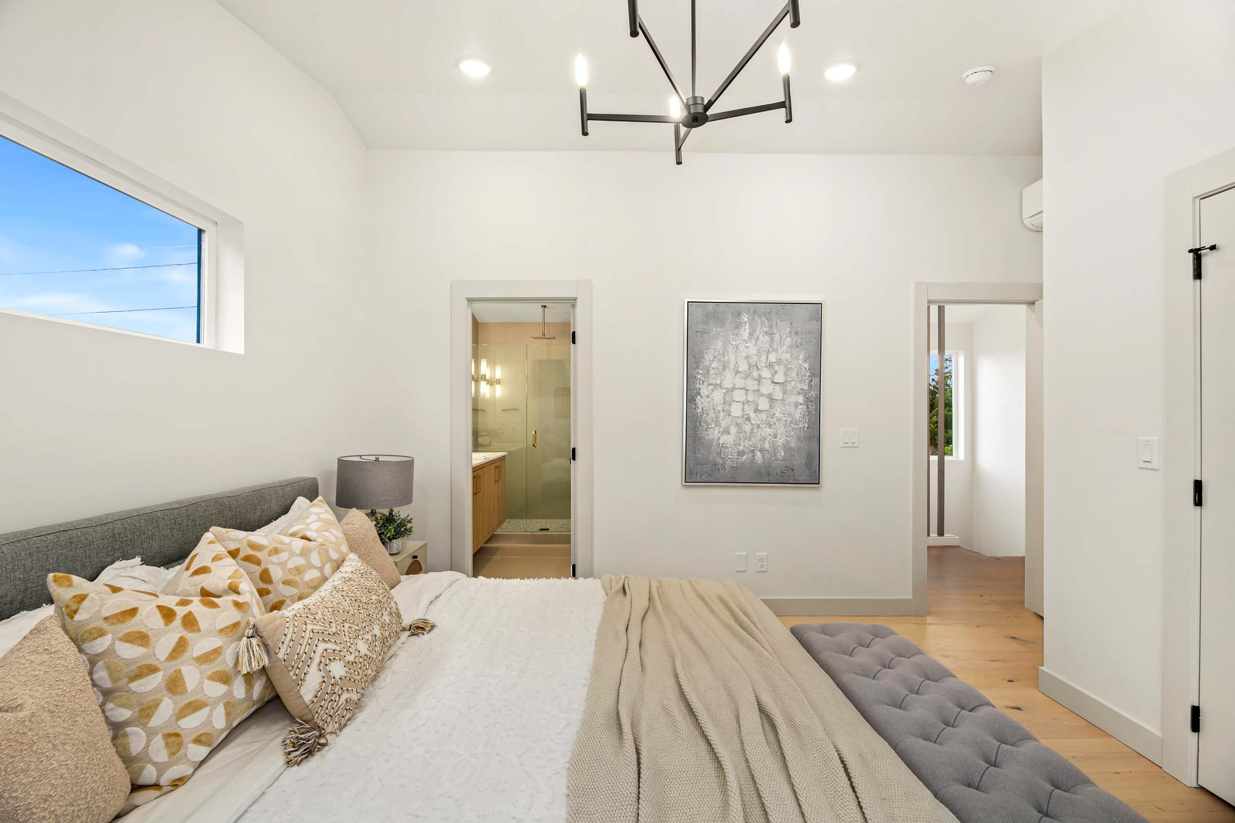 This home features a gorgeous primary suite w/vaulted ceiling, built-in closet organizer, heated bath floors, walk-in shower with rain head shower heads, designer tile & double vanity. Spacious kitchen with all the chef’s touches, high end appliances, custom cupboards & hood, spacious island for pre & in kitchen eating bar. All rooms have mini-split A/C. Designated parking wired for e-car charger. Main/entry level features living room, kitchen & powder room. Generous use of hardwoods throughout, wonderful daylight in every room and fully fenced yard.