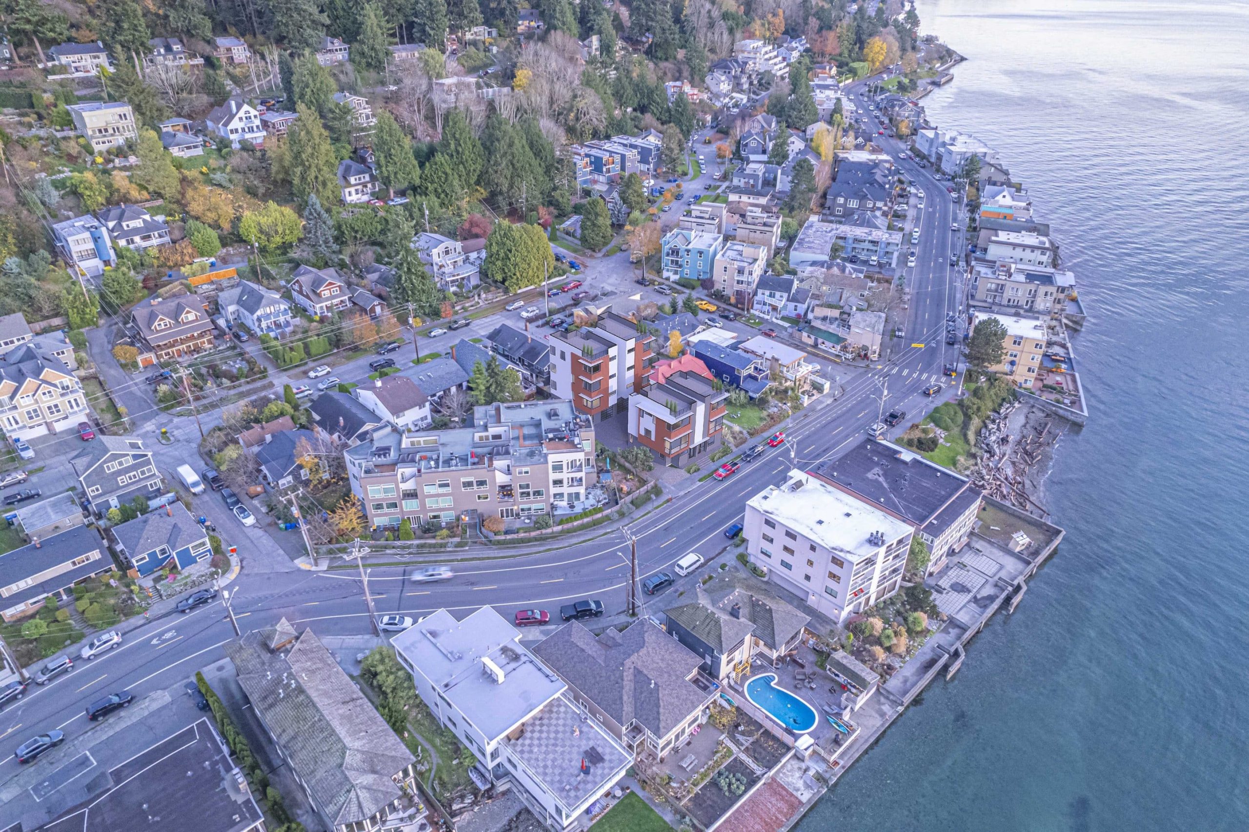 Custom design and construction of two duplexes, a total of four units on Beach Drive in Seattle, WA.